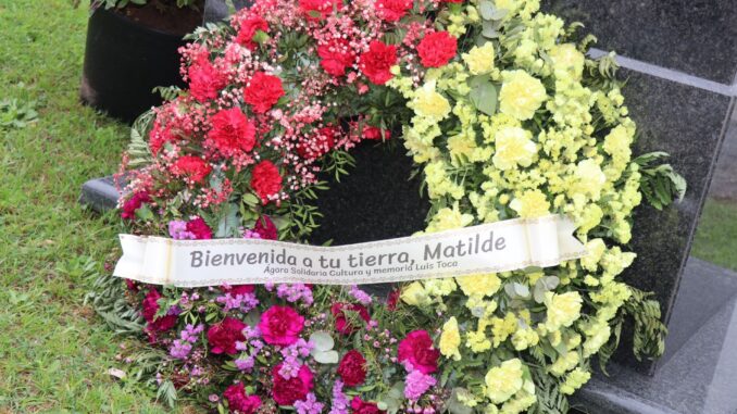 Aquí estamos, Matilde. Aquí estás, para darnos fuerza, para servirnos de referente indomable que nadie, ni la propia muerte, consiguió doblar. Estamos como estabas en el barco que te llevó al exilio vagando por el Atlántico, navegando sin luces para que los amigos de quienes te expulsaron de tu tierra quemaron tus cosas y desvalijaron tu casa, no os apresaran y os llevaran hasta el paredón como a Matilde Zapata y tantas más. Allí, en ese barco tan lleno, tocabas el piano como poseía de la rabia alegre del superviviente y cantabas para la gente canciones de tu tierra, de nuestra tierra, esa que tanto amabas, y también tocabas a Mozart y a Haendel, mezclando la música como mezclabas en tu alma el amor al rincón donde naciste y la grandeza europea, además de las ideas de justicia social, de democracia, republicanismo y el socialismo que te llegó a poco que asomaste los ojos al mundo.