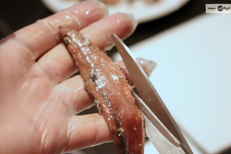 La elaboración de la anchoa es lenta, una vez pescada se limpia y se ensala al momento, es decir se coloca el pescado sobre sal en altas hileras que pasan a conservarse durante meses, a veces llega hasta un año en controlado proceso de humedad e higiene. Pasado ese tiempo llega el trabajo exquisito del “sobado” en el que una a una son raspadas las anchoas por las mujeres hasta eliminar todos los resquicios de espina sin que pierda el sabor para luego rellenar las latas o tarros con aceite y proceder a la comercialización. Hay empresas que han industrializado estas labores, o que sumergen el pescado en agua caliente para expulsar más rápido las espinas perdiendo el sabor en la manipulación. O que el bocarte llega de lugares lejanos, Perú, China…todo lo cual deteriora la calidad de la verdadera anchoa. El proceso manual artesano, aunque pesado y lento, es lo que garantiza el sabor y la textura inigualable de las anchoas procesadas de forma manual.