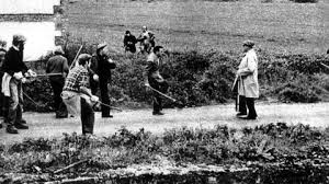 Fraga Iribarne (fundador poco después de Alianza Popular, germen del PP) proclama que la calle es mía por lo que hace lo que le da la gana con quien se manifiesta. Nadie asume responsabilidades, se culpa a los huelguistas de la masacre y no es juzgado ni uno solo de los policías que han disparado a discreción.
